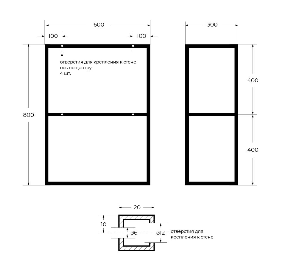 Двухъярусная подвесная металлическая полка CADRO 60x30x80 Nero CADRO-60/30/80-2C-SO-MET-ST CEZARES